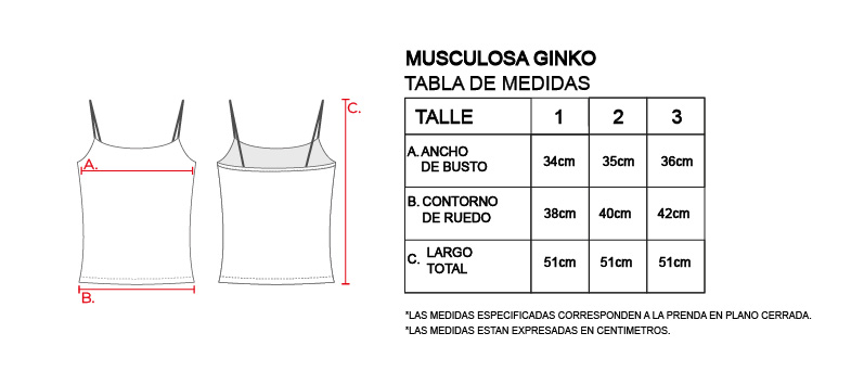 Remera musculosa bretelera con busto embolsado del mismo textil. Posee un escote bajo redondeado. Los breteles a tono, son elásticos y regulables con reguladores metálicos de níquel. El largo modular de la prenda se extiende hasta la primera cadera.